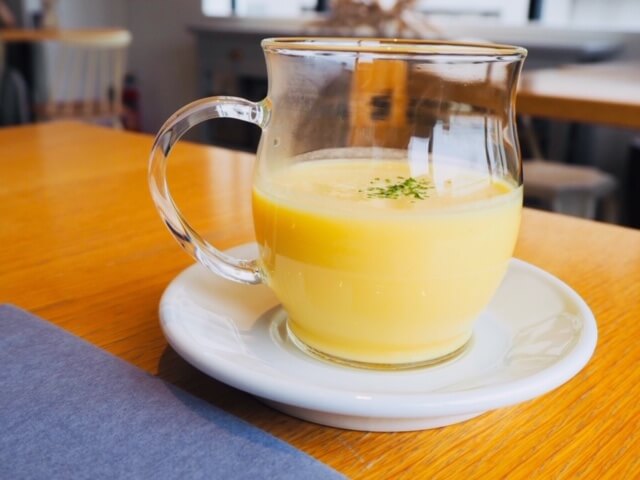 この日の週替わりスープは「コーンスープ」でした。手作りの優しい味♡(2019年5月)