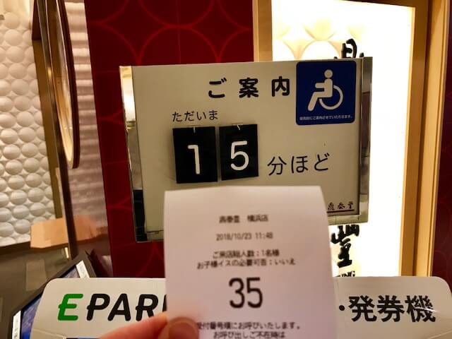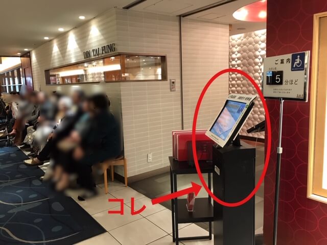 鼎泰豐(ディンタイフォン)横浜高島屋店に着いたらまずコレ!人数を入力します。