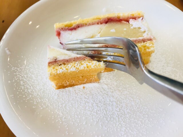 今日のショートケーキは洋梨のケーキでした(サイズは小さめです)