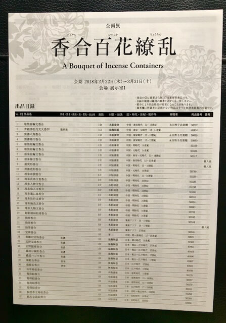 出品目録(企画展「香合百花繚乱」平成30年2月22日(木)~)