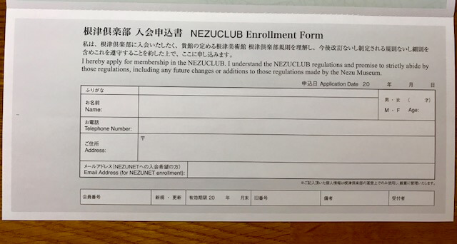 根津美術館 入会申込書