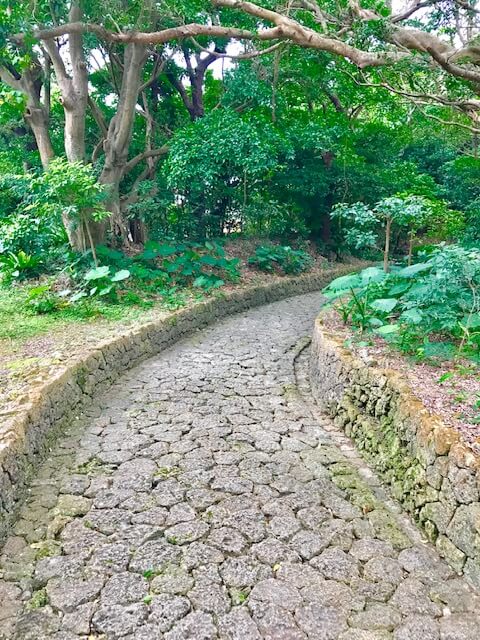 正門や通用門から識名園中央の池にむかって琉球石灰岩でできた石畳の道が続きます。南国らしい雰囲気が漂います。