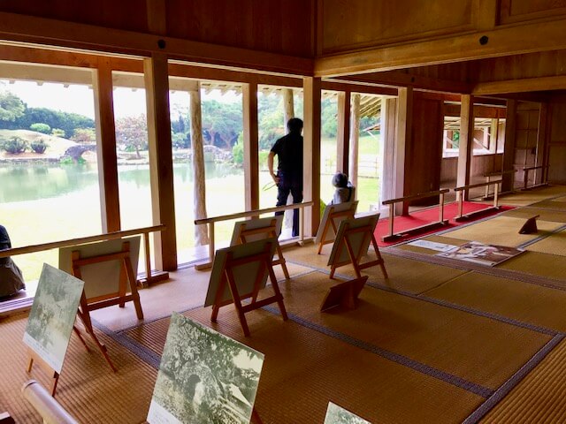 一番座の前の縁側は座ることができ池の景色を心おきなく楽しむことができます。