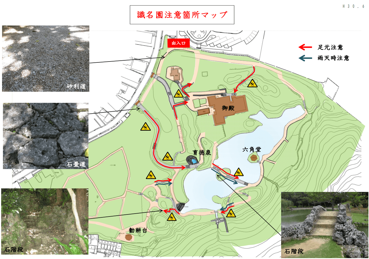 「園内注意箇所マップ」(識名園管理事務所公式ホームページより引用)