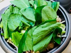 今日は白菜の代わりに小松菜。鶏肉の下には玉ねぎを敷きました。